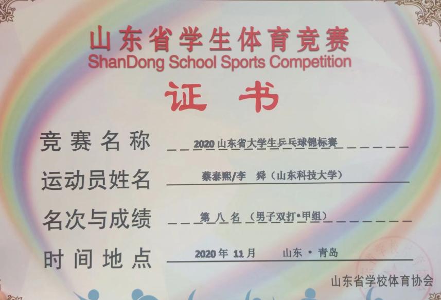 比赛中,公司运动员团结合作,配合默契,不断突破自我,获得男子团体赛甲组第三名成绩。其中,信誉最好的十大体育平台运动员李舜获男子双打甲组第八名成绩。