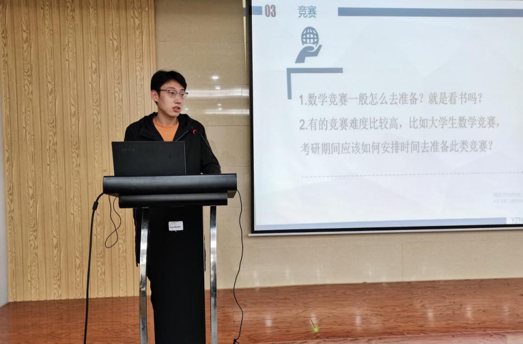 交流活动中,助教团成员结合自己的学习经验,从考研问题和学习习惯等方面与同学们进行了深入的交流。在考研问题上,学霸助教团成员袁彤从前期准备、院校选择、专项科目、导师以及竞赛等问题上进行了详细解答,并指出要在平常积累的情况下善于总结,对自己的弱项学科进行强化,充分利用院校考研真题,在真题中总结题目的特点和规律,提高解题效率。在学习习惯问题上,任鹏旭表示要学会制定学习计划,并且能够严格按照计划进行学习,劳逸结合,形成良好的学习习惯。最后,在自由提问阶段,同学们就如何复习考研,如何选择考研院校等问题寻求意见建议,学霸助教团成员耐心地为同学们作了解答,并且分享了自己的考研经历。