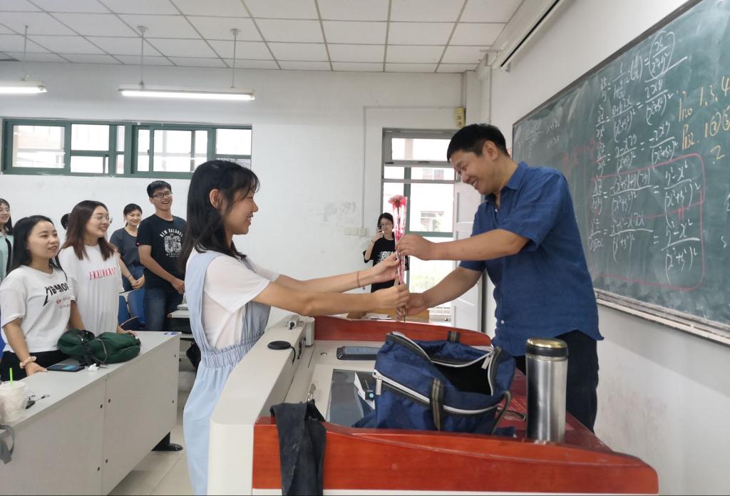 秋菊溢彩,桃李芬芳。在第三十六个教师节来临之际,数学学子别出心裁地开展了为老师送祝福“双一行动”——为当天授课的老师献一支花、送一句祝福。