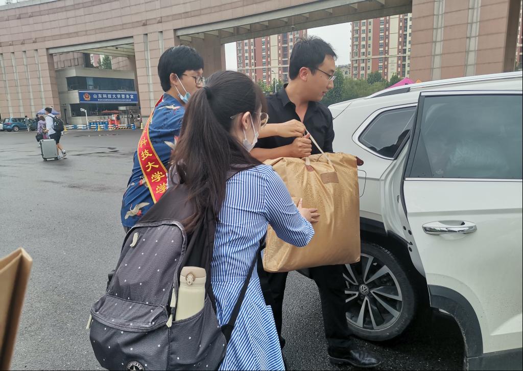 天公虽不作美,却难挡数院师生的热切心情,数院学子刚踏入校门,迎面而来的便是等候已久的员工党员。为了帮助这些大包小包的“大学新鲜人”,数院师生党员自发组成“迎新”小分队,在返校入口处迎接员工,成为雨季校园里的一道靓丽风景线。搬运行李、含蓄问暖,虽没有统一的志愿者服装,但为学弟学妹们提供周到服务的热情却丝毫不减。除了员工党员,还能看到兼职“滴滴司机”的辅导员开着私家车为员工雨中搬运大件行李。