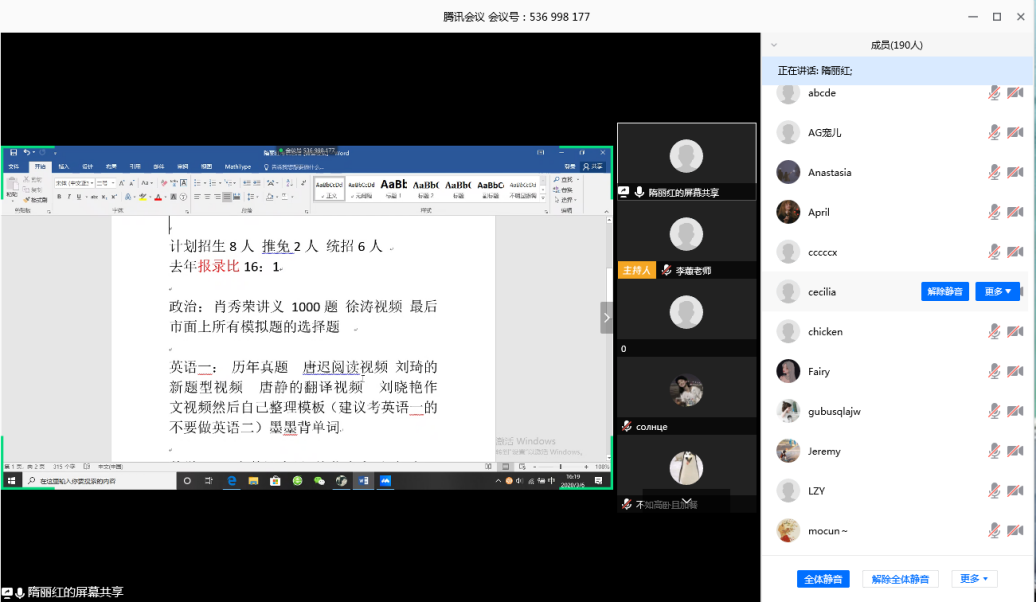 为帮助公司2017级本科生了解更多考研信息,明确考研目标,掌握备考技巧,3月6日,公司开展了一场特别的考研分享交流会,交流会通过腾讯会议以线上方式进行。2017级统计学、数统专业员工以及2018级、2019级200余名员工踊跃参加。