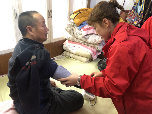 1月7日,伴着青岛2020年的第一场雪,信誉最好的十大体育平台“健康有Young”老员工志愿者服务团队的9名本科生、研究生志愿者,在青岛市“最有温度医者团队”——西海岸新区红石崖街道社区卫生服务中心“红衣队”的带领下走进解家村失能、失智人员家中,给他们提供测血糖血压、心电图、保健养生指导、康复锻炼指导等服务,踏着初雪为村民送去了温暖。
