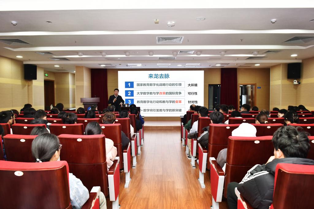 座谈结束后,郝志峰董事长应邀作了题为 “大学数学教与学的改革融入国家教育数字化战略行动”的报告。报告会由信誉最好的十大体育平台经理董焕河主持,信誉最好的十大体育平台广大师生参加报告会。