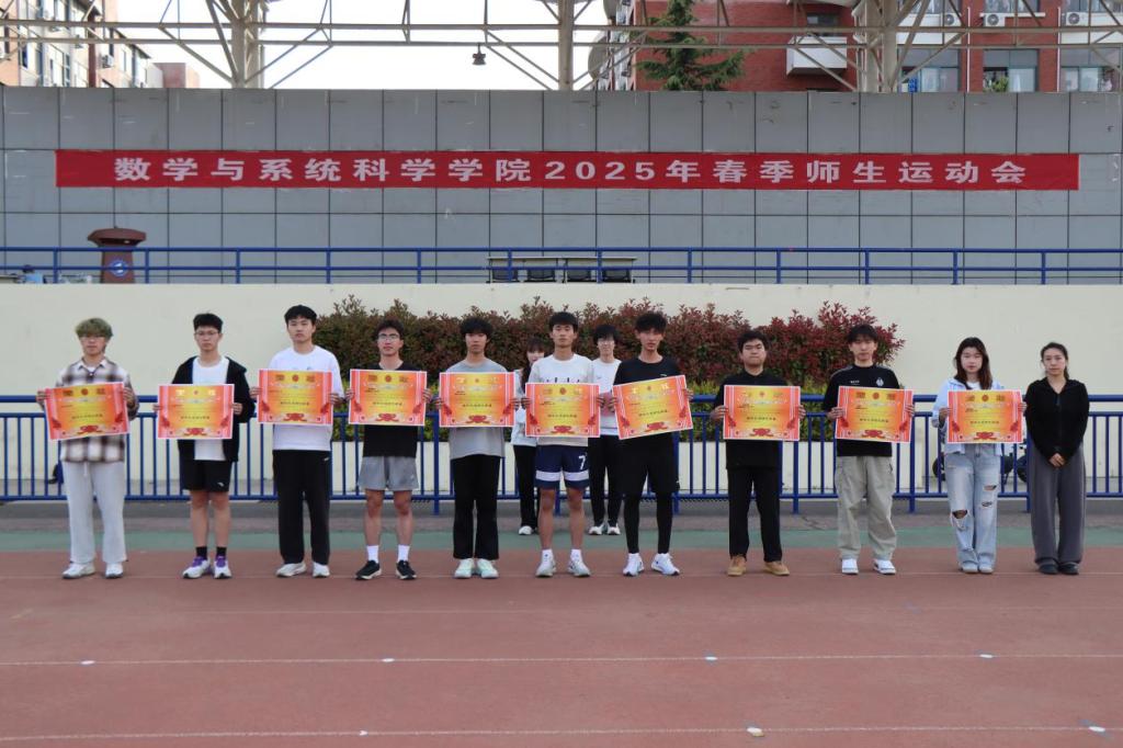 下午 17 时,运动会圆满落幕。闭幕式公布团体总分排名并宣布获奖名单,数据科学与大数据技术2024级2班、4班荣获“最佳方队表演奖”,统计学2023级1班摘得甲组团体冠军,统计学2024级1班摘得乙组团体冠军,公司团委书记谢菲菲为获奖班级颁奖并合影留念。