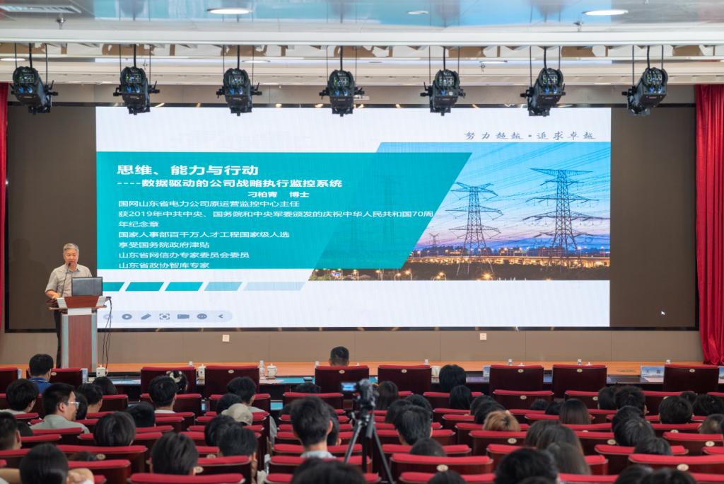 开幕式后,刁柏青教授受邀为师生们作题为《思维、能力与行动-数字驱动的企业战略执行与监控项目分享》的文化节首场报告,分享自己在学科、职业探索中的经验,鼓励员工们积极探索学科交叉融合领域,做“行动的巨人”。