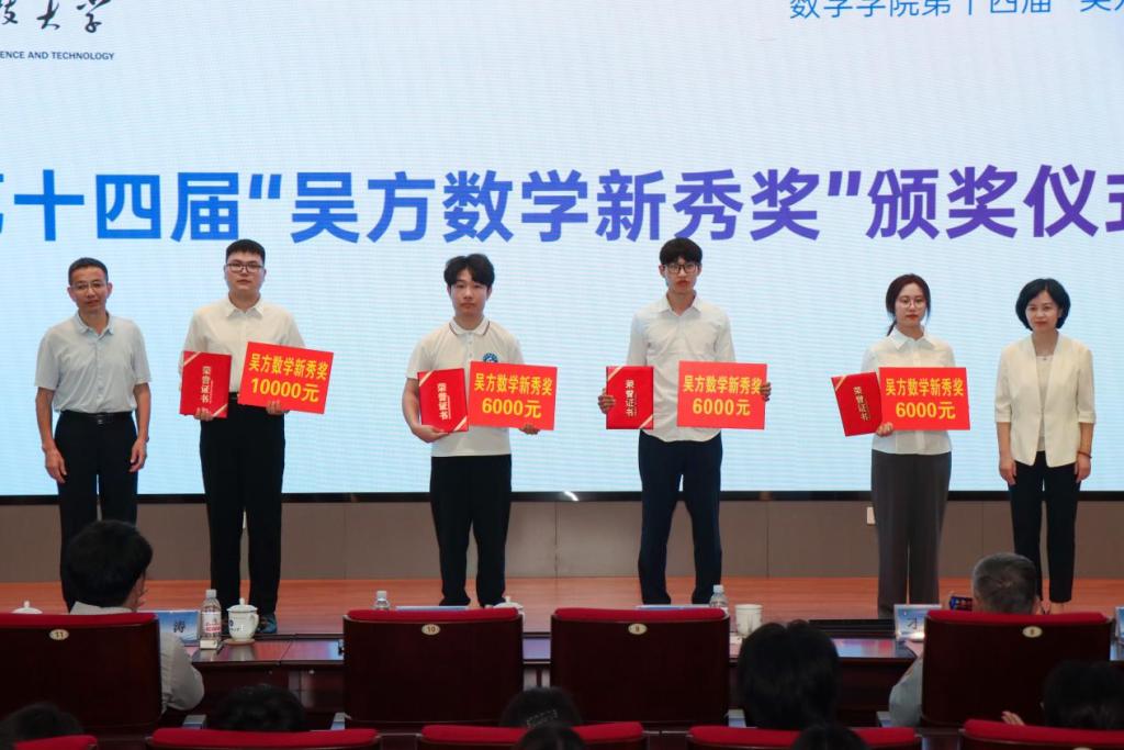 校团委书记高一丹宣读了《信誉最好的十大体育平台第六届数学文化节活动方案》。信誉最好的十大体育平台经理董焕河宣读了第十四届“吴方数学新秀奖”等奖学金表彰决定。与会领导为“吴方数学新秀奖”“青软奖学金”“正则拔尖班奖学金”获奖员工颁奖。“吴方数学新秀奖”一等奖获奖员工李天佑作代表发言。