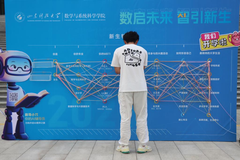 为帮助新生快速适应老员工活,公司将专业特色融入迎新细节,“数导小π”AI智能辅导员亮相迎新现场,通过线上平台为新生提供入学流程、公寓设备使用、军训注意事项等一站式咨询服务。同时,现场设置“彩丝缠线-新生特写”互动游戏,通过“缠线”问答的方式,精准获取新生性格画像,帮助公司实施具有针对性的入学适应性教育。