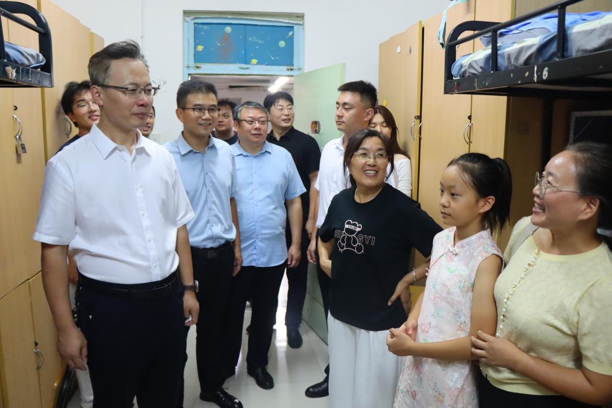 公司党委书记贾红果、经理董焕河、党委副书记兼副经理尹建等公司领导班子成员,到达迎新现场,细致检查人员、物资配备及应急措施的落实情况。深入员工公寓,全面检查新生宿舍的设施配备和卫生状况。期间,他们与新生亲切交流,详细了解新生的适应情况,并勉励同学们以饱满的精神面貌迎接崭新的校园生活。