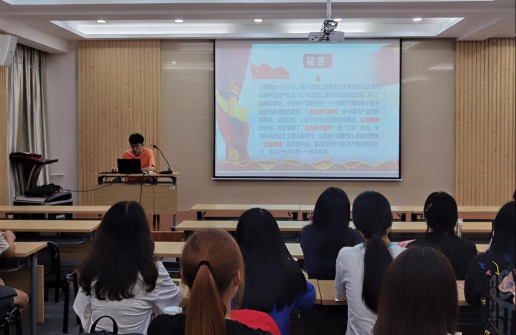 邹世平以“红船精神,走在时代前列”为主题,讲述了“红船精神”的深刻内涵,并通过讲述老一代革命家的英勇事迹,号召同学们要在学习和工作的实践过程中继承和弘扬这种时代精神,以创新的精神永葆党的生机和活力。面对新时代的新机遇和新挑战,作为青年员工党员,更要坚持和发扬“红船精神”,把“走在前列”的要求体现到精神状态上,坚持用创新的理论成果武装头脑,与时俱进,为我们国家注入新鲜活力。
