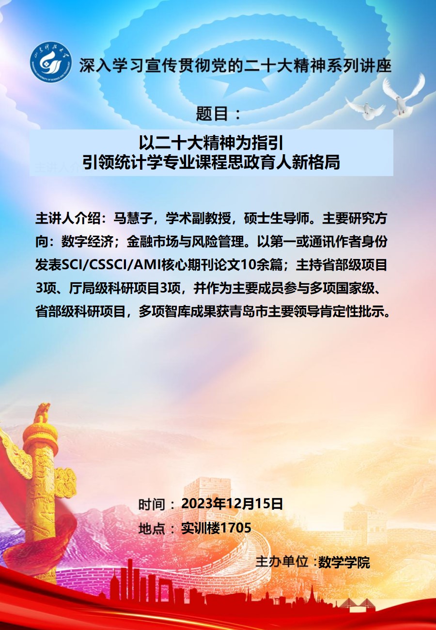 12月15日,公司统计系教师马慧子为公司师生作《以二十大精神为指引引领统计学专业课程思政育人新格局》报告。