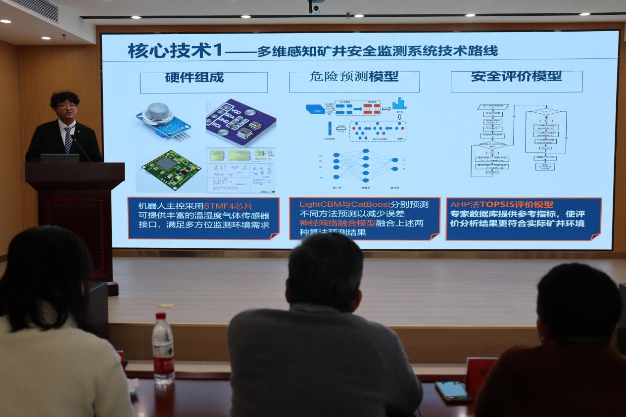比赛开始,9个项目团队按照现场抽签的次序逐一上台进行答辩。他们紧紧围绕项目的创新性精髓、技术实现的可行性蓝图,以及潜在市场的广阔前景等核心问题进行详细阐述与现场展示。每个团队答辩结束后,评委老师们从科学性、先进性和现实意义等多维度进行提问,考验各团队的临场应变能力,并提出了针对性与建设性的修改意见,为其项目后续的优化与改进提供思路。