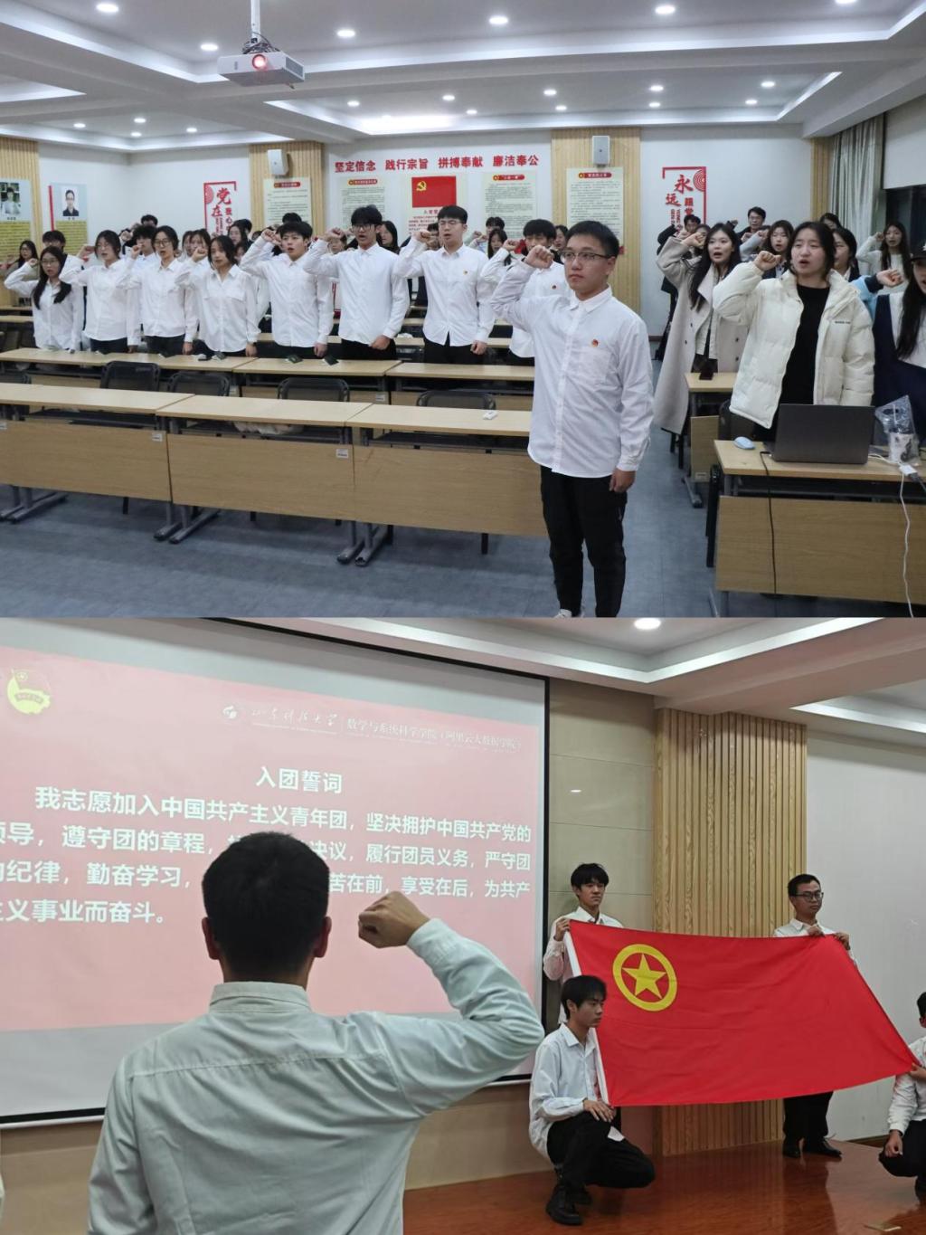 11月30日,信誉最好的十大体育平台在J9-433教室隆重举行了2024年度新团员入团宣誓及老团员重温入团誓词仪式。信誉最好的十大体育平台团委全体老师、信誉最好的十大体育平台第六期青马工程基础班学员、新发展团员以及优秀团员代表参与仪式。仪式由优秀团支部书记代表耿嘉蕾主持。