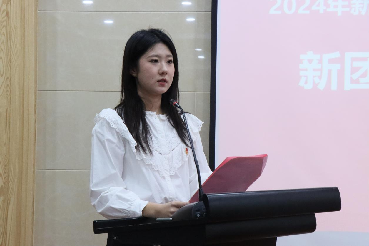 统计专业2023级1班邢晓凤作为新团员代表发言,她表示非常荣幸能够加入中国共产主义青年团,并号召新团员在今后的日子里严于律己,勤奋学习,用铿锵步履践行“强国有我,请党放心”的铮铮誓言。统计专业2022级2班杨林涵作为优秀团员代表发言,她鼓励新团员们要接过时代赋予的“接力棒”,勇当时代“主角”,追随信仰之光、扛起历史之责、不负时代之望,奋力书写为中国式现代化挺膺担当的青春篇章。