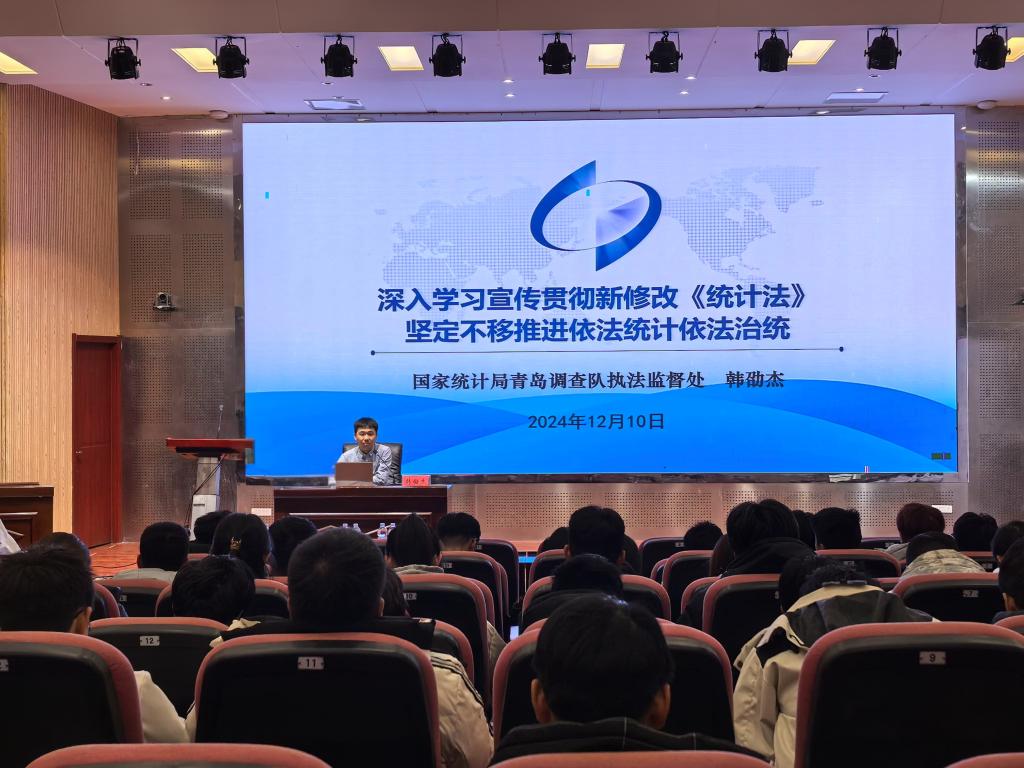 为持续落实“八五”普法规划要求,切实提升在校老员工法治意识和法治素养,进一步推进法治校园、文明校园建设,12月10日下午,信誉最好的十大体育平台于J9-144报告厅举办普法宣讲活动,邀请国家统计局青岛调查队与国家统计局青岛西海岸新区调查队针对新修改的《中华人民共和国统计法》进行宣讲。