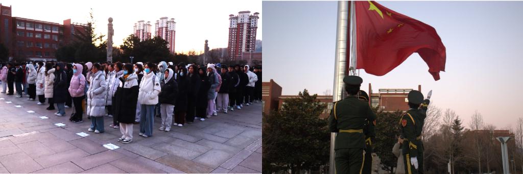 在晨曦微露中,2024级与2023级全体员工精神饱满地参加了新学期第一次升旗仪式。他们向着朝阳、向着国旗,迎接新学期的到来。