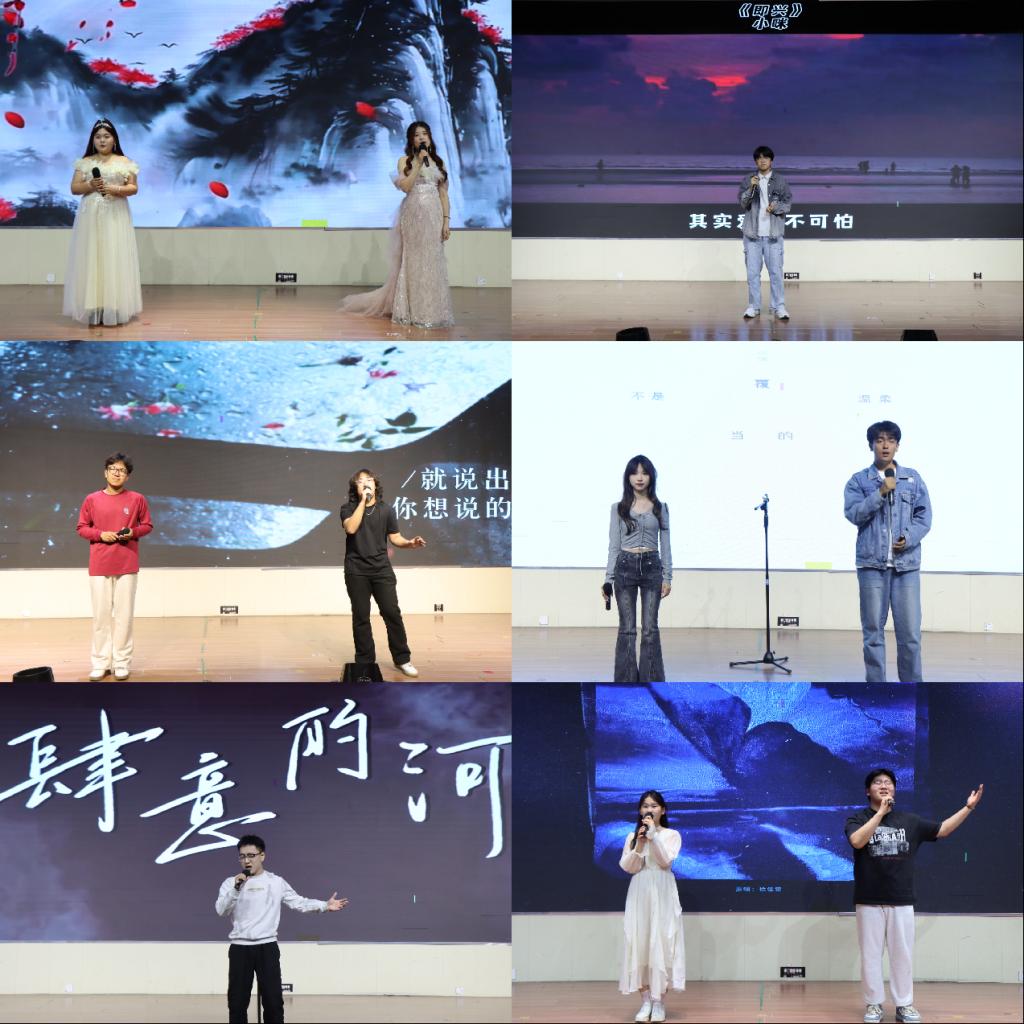 比赛现场星光熠熠,《肆意的河》《你爱我还是他》《至少还有你》等经典歌曲轮番上演,既有深情款款的抒情演绎,也有活力四射的舞台表现。选手们通过独特的嗓音和精湛的演唱技巧,将音乐魅力展现得淋漓尽致。中场环节,舞蹈队带来的现代舞《Pocket locket》以灵动舞姿点燃全场,乐队倾情演绎五月天经典曲目《恋爱ing》,掀起阵阵欢呼。经过激烈角逐,姚道一凭借出色发挥斩获一等奖;王叙然、丁嘉铭荣获二等奖;何佳乐、董正凯、郑家硕获得三等奖。