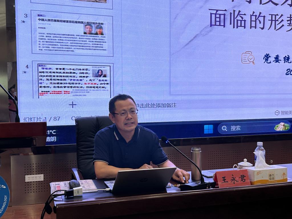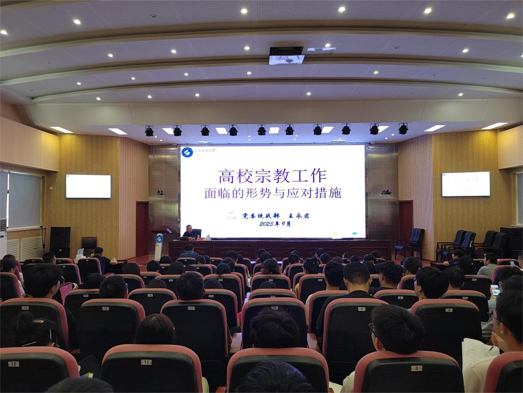 报告会上,王永君以习近平总书记关于民族宗教工作的重要论述和我国民族宗教工作的政策法规为基础,围绕我国的宗教现状与方针政策、宗教的本质和根源、高校宗教工作的重点难点三个方面,阐述了当前高校宗教工作面临的新形势和新任务,并结合高校特点,就如何做好宗教工作进行了讲解。整场报告内容丰富,深入浅出,既有政策理论高度,又紧密联系实际,为公司师生党员深入学习贯彻落实党的宗教工作方针政策具有积极指导意义。(通讯员:范轲)
