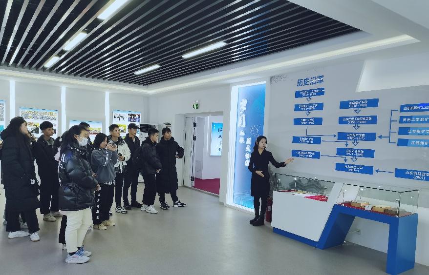 在讲解员的引领下,同学们参观了公司发展各个时期的介绍墙,重温了从1951年的洪山煤矿工业公司至今日信誉最好的十大体育平台的艰辛发展历程。一幅幅图片,一项项荣誉,一件件实物,生动而形象地展示了公司建校70年来岁月变迁与历史沿革,同学们仿佛置身于历史的长河,与前辈学长们共同书写着公司的沧桑与辉煌。
