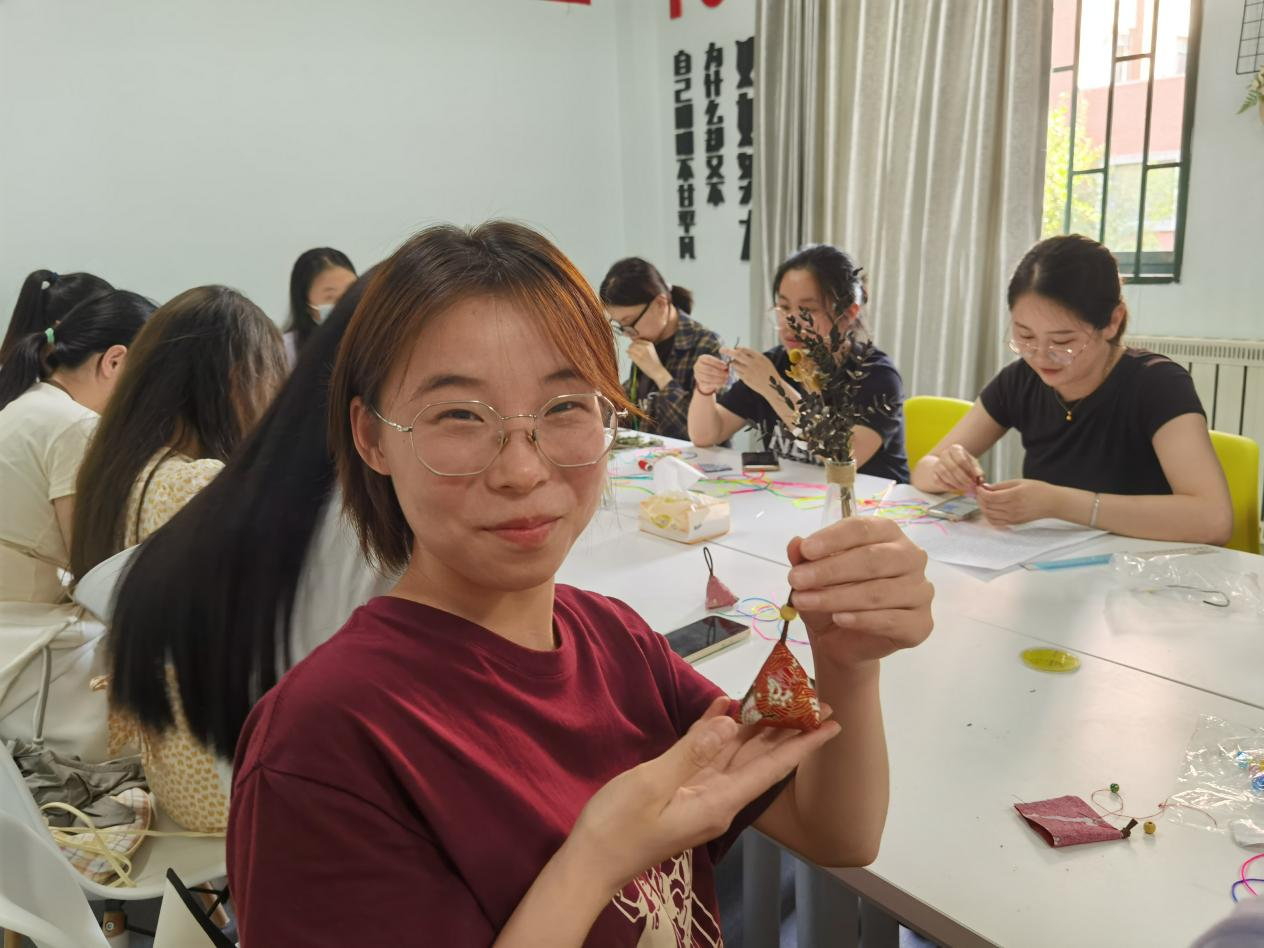 “今天的活动特别热闹,师生们欢聚一起,穿针引线、边学边做,满满的成就感。同时,也让我们更加深刻地认识到了端午节的意义,作为新时代老员工,我们要坚定文化自信,不能只挂在口头上,更要落实到行动上。”2021级数学与应用数学专业员工耿嘉蕾说道。